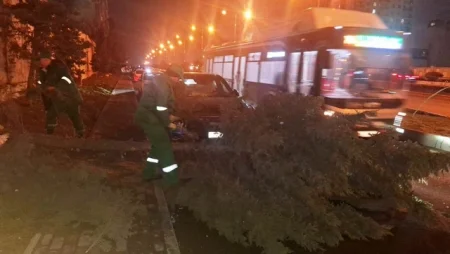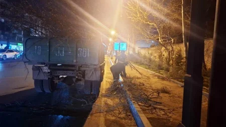 Bakıda güclü külək onlarla ağacı sındırıb