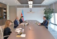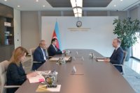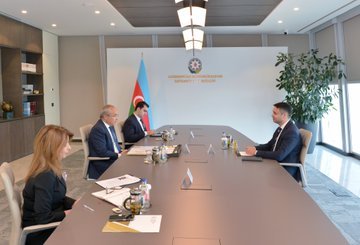 Azərbaycanın iqtisadiyyat naziri Mikayıl Cabbarov dördüncü "Yüksəliş" müsabiqəsinin qalibləri Təbriz Əmmayev və Toğrul Yaqublu ilə görüşüb.