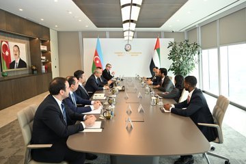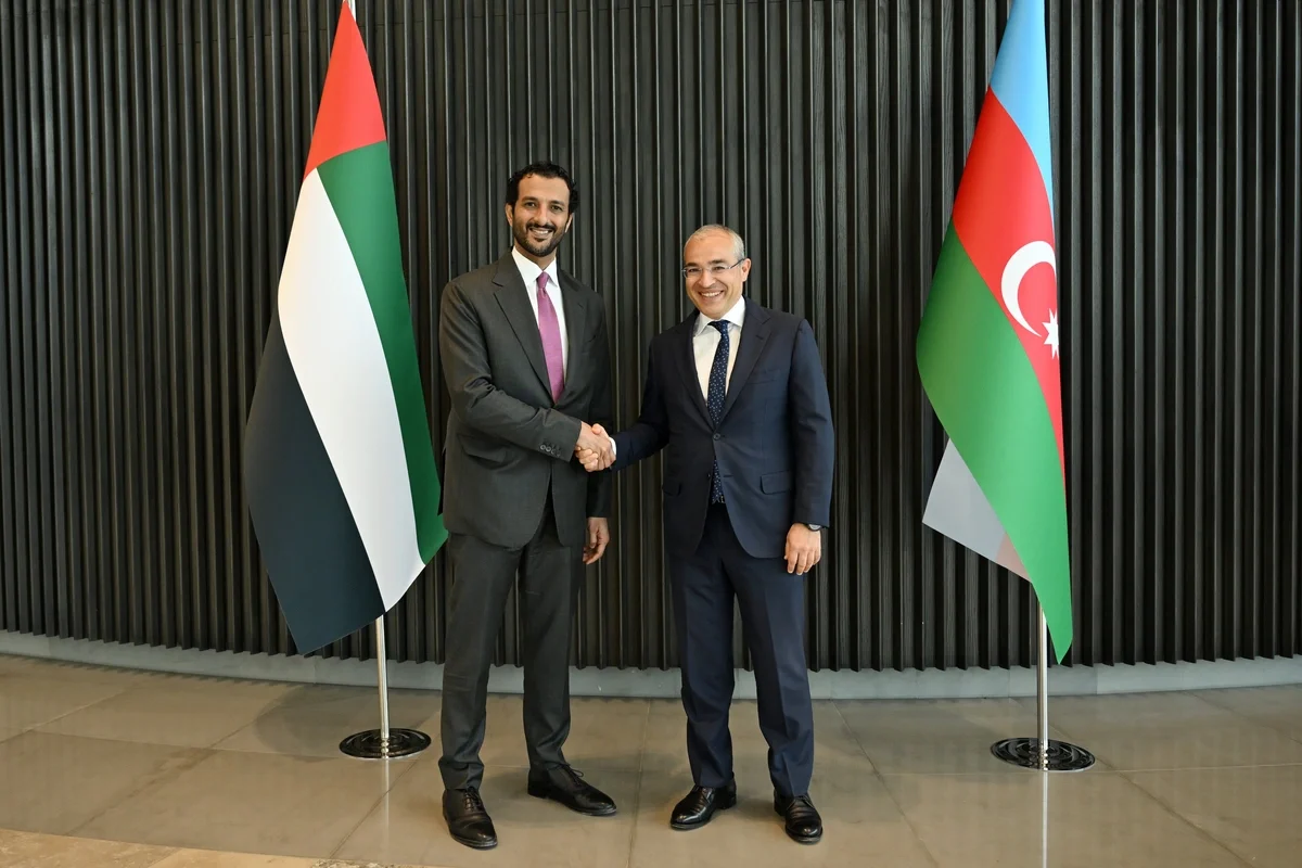 "BƏƏ-nin iqtisadiyyat naziri, həmkarım Abdulla Bin Touq Al Marrinin rəhbərlik etdiyi nümayəndə heyəti ilə görüşməkdən məmnun olduq. Ölkələrimizin iqtisadi sektorda birgə fəaliyyəti, ticarət, investisiya, sənaye parkları və yaşıl enerji sahəsində əməkdaşlığın genişləndirilməsi barədə müzakirələr apardıq" - deyə, nazir qeyd edib.
