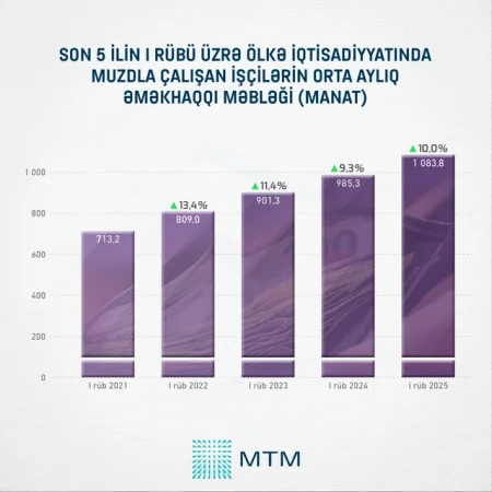 Rəsmi rəqəmlərə əsasən, son illərdə ortaaylıq əməkhaqqı məbləği hər il ortalama olaraq 11% artır. Cari ilin I rübündə ortaaylıq əməkhaqqı məbləği 2021-ci ilin I rübü ilə müqayisədə 52% və ya 370.6 manat artaraq 1 000 manat səviyyəsini keçib.