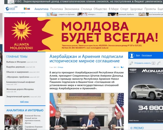 "Noi.md", "Point.md", "Newsmaker.md" və digər xəbər portallarında dərc olunan məqalələrdə Azərbaycan ilə Ermənistan arasında münaqişənin həlli ilə bağlı bəyannamənin əhəmiyyətinə xüsusi yer verilib. Eyni zamanda, Azərbaycan Prezidenti İlham Əliyevin və Ermənistanın baş naziri Nikol Paşinyanın ABŞ Prezidenti Donald Trampın vasitəçiliyi ilə Birgə Bəyannaməni imzalamalarının çoxillik münaqişəyə son qoyduğu və regionda əməkdaşlıq üçün yeni imkanlar açdığı qeyd edilib.